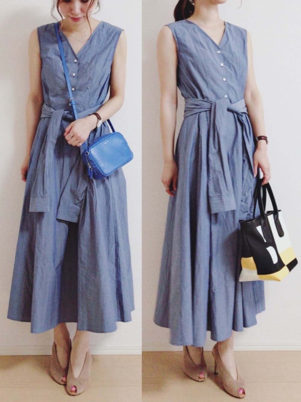 MIKUのシャツワンピース「ノースリフレアシャツワンピース」を使ったコーディネート