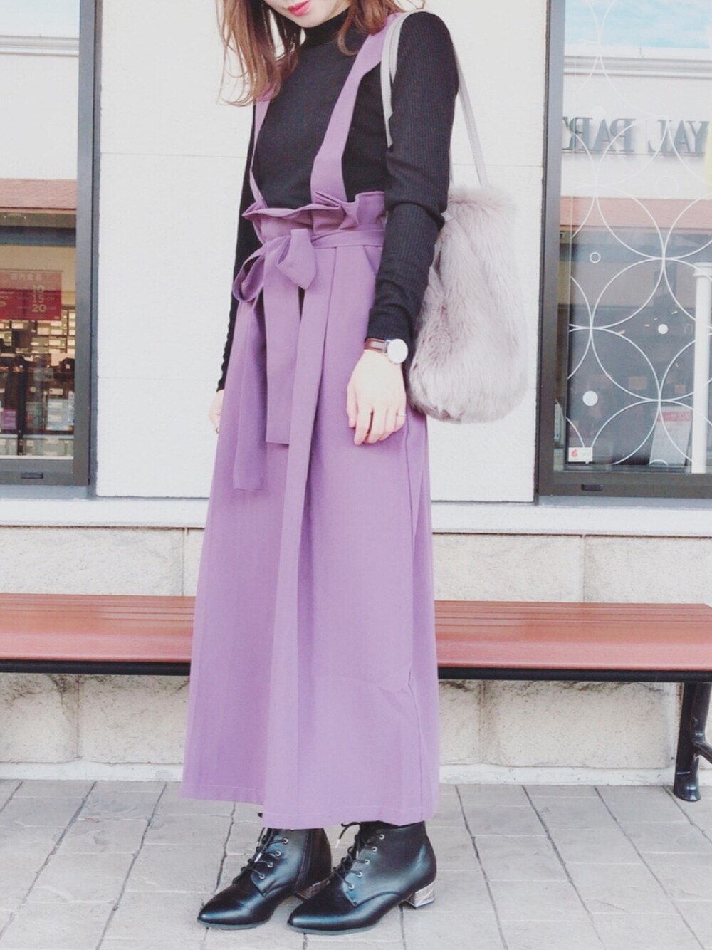 MIKUのスカート「KBF+ サスペンダー付きマキシスカート」を使ったコーディネート