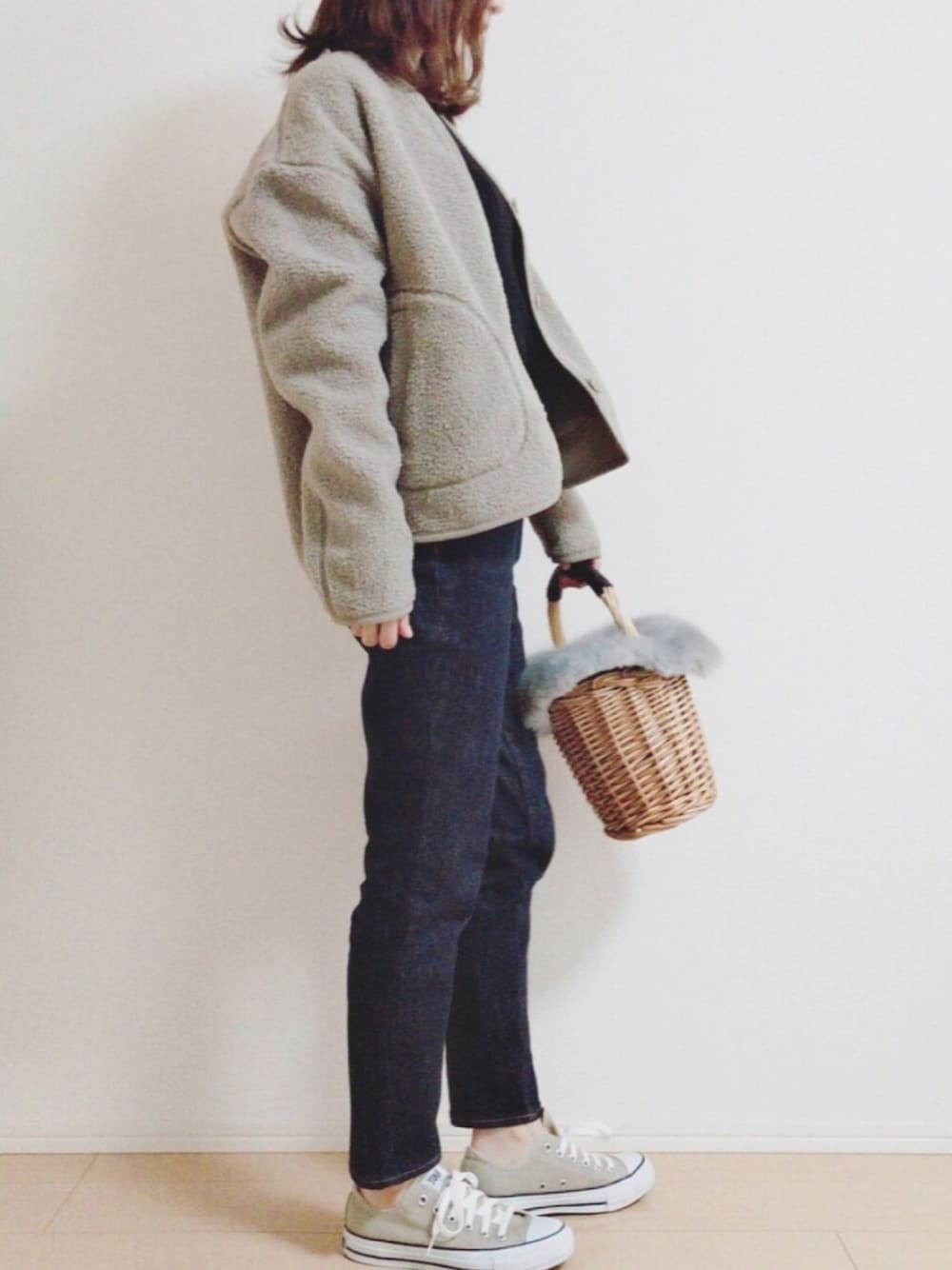 MIKUのその他アウター「フリースノーカラージャケット(長袖)」を使ったコーディネート