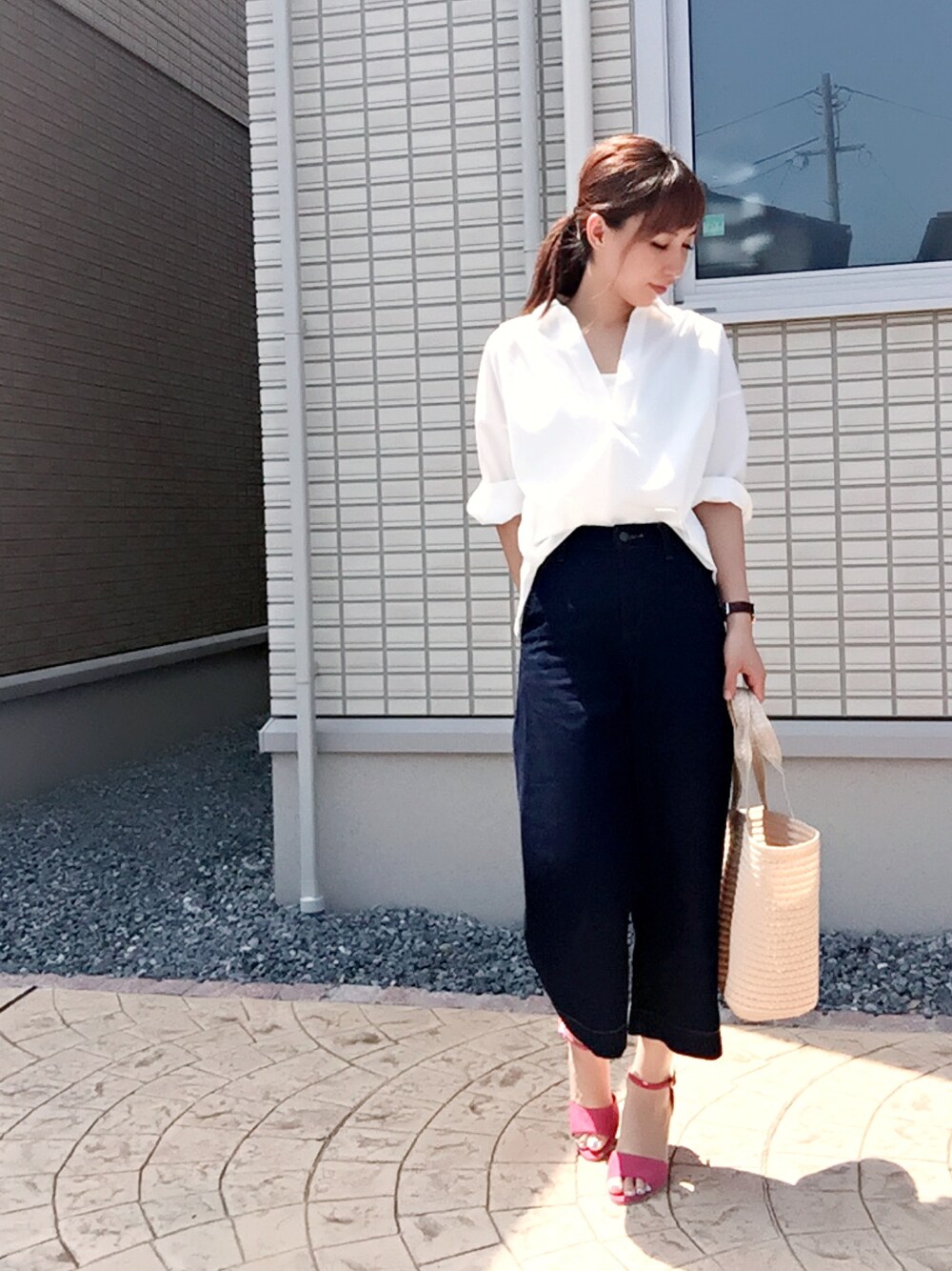ドラフトコーデ✨ JELLY BEANS様💕 ピンクのサンダル❤️コーデのアクセントになる🎵ピンクとか持ってなくて買ったんだけど、可愛いくていっぱい履いちゃいそうです😁✨ ヒールも高すぎずに、歩きやすい高さで💕足を綺麗に見せてくれるデザインだと思います❤️ コーデは前回コーデのサンダル、とカバンを変えただけ❤️靴だけで雰囲気変わるって改めて思いました😍💕カゴバックは百均の200円商品🎵 いつもいいね、セーブ、コメントありがとうございます❤️❤️❤️