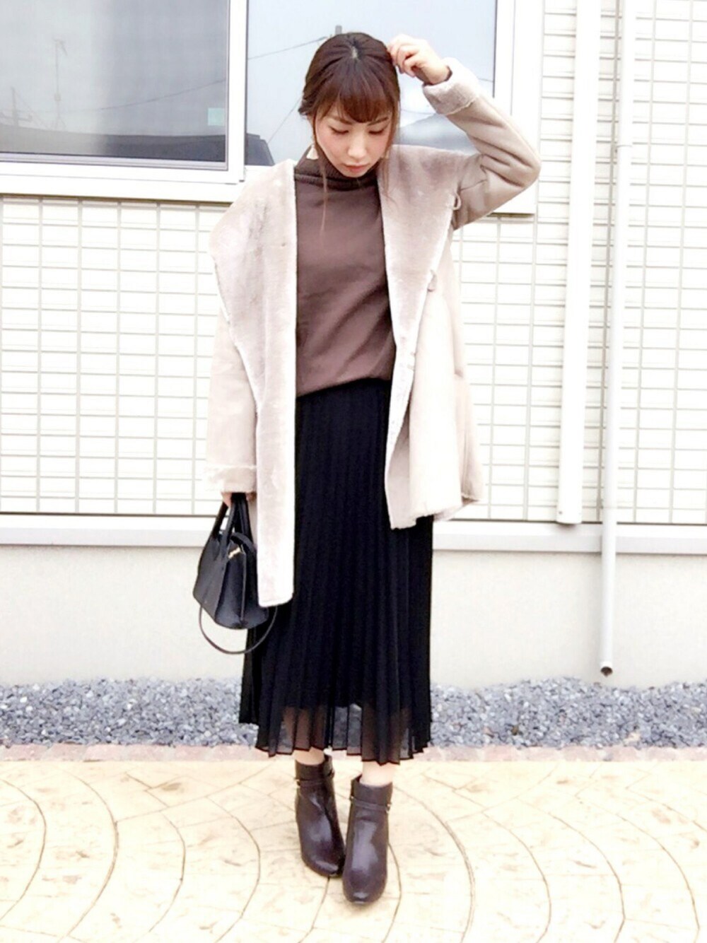 MIKUのムートンコートを使ったコーディネート