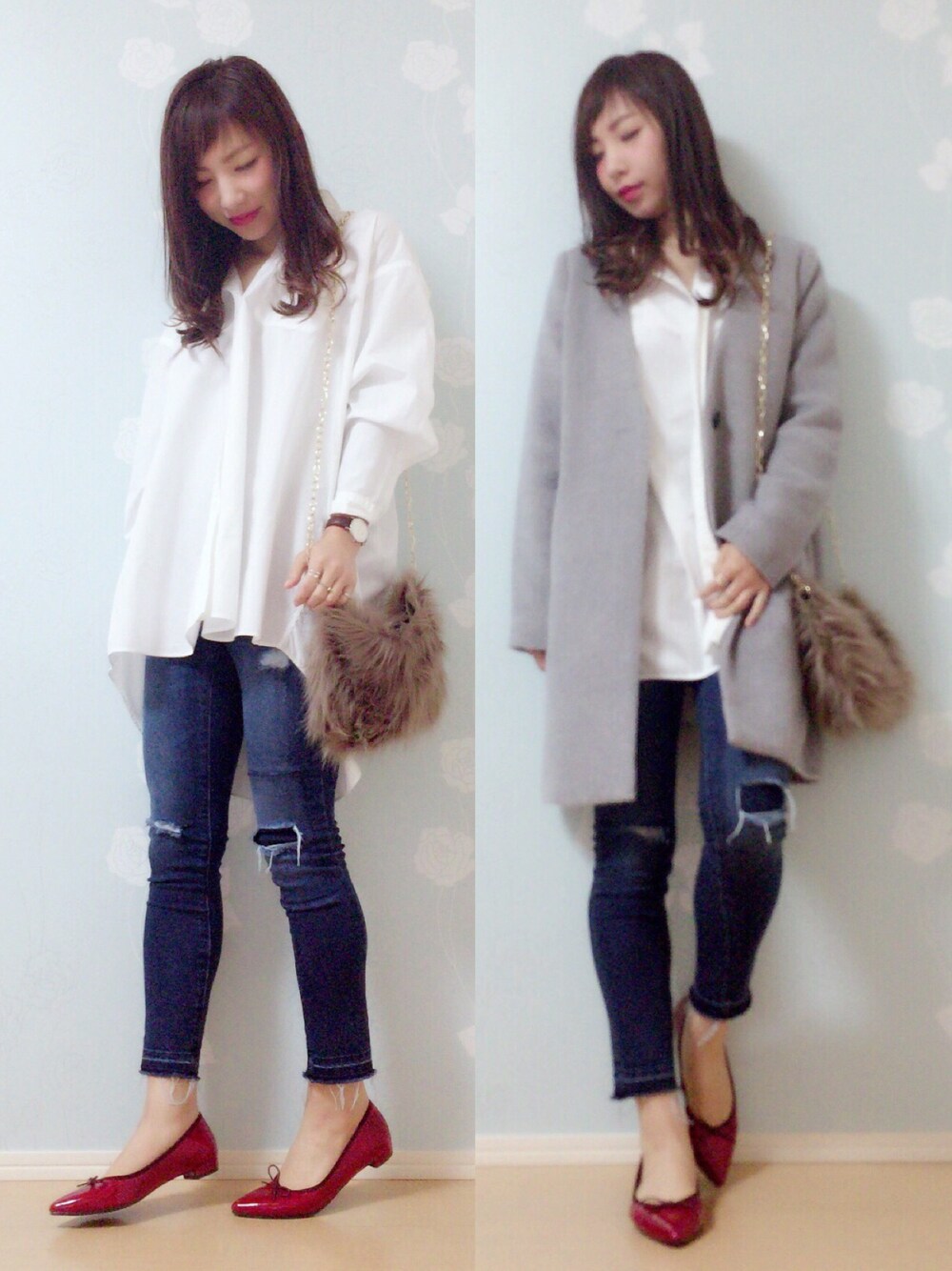 こんにちは⌣̈⃝♡⌣̈⃝♡ *☼*―――――*☼*――――― 今日はUNIQLOのオーバーサイズシャツにスキニーでシンプルコーデ❤️ JELLY BEANSのバレエパンプスでアクセント💕 バレエパンプスほんと可愛いです❤️ *☼*―――――*☼*――――― Instagram→miku.wear よろしくお願いします🙏✨ いつもご覧いただきありがとうございます❤️❤️❤️