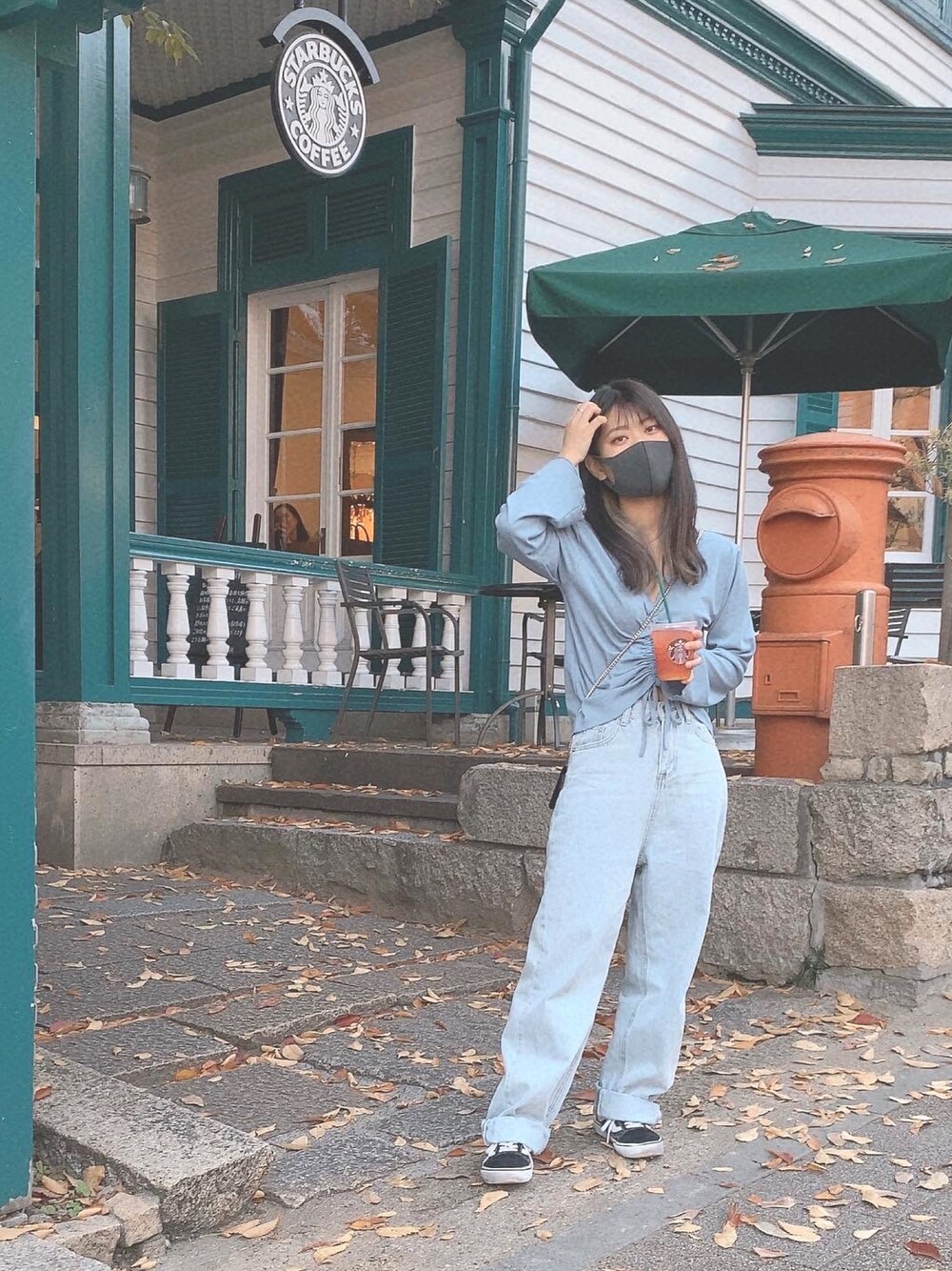. 早く上着なしでお出かけしたい👗 休日はほとんどカフェ行く☕️🍰 靴はエアフォースでもかわいい😍 . スタバ好きにはここ可愛くて最高の場所でした😃 また行きたい…🥺 .