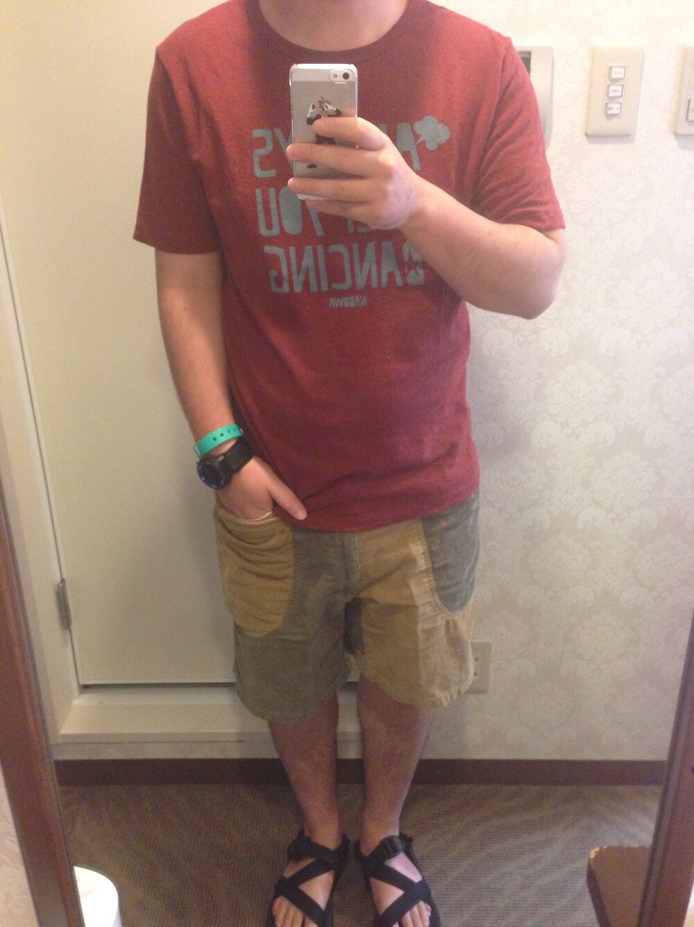 GREENROOMフェス2日目も楽しみです! バンドT:Nabowa × GO HEMP ボトム:GO HEMP サンダル:Chaco 時計:P01