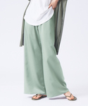 シンプルでクールなコーデも光沢素材パンツで女っぽさアップ。