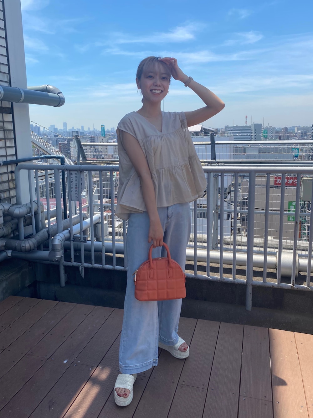 🏷Vネックティアードフレンチスリーブブラウス ティアードのデザインがふんわりで密着しすぎずサラッと着やすく、少し肩にかかってくれるフレンチスリーブなので二の腕もすっきりカバーしてくれます✊🏻丈感が長すぎないので下にワイドデニムやゆったりしたパンツを合わせてもかわいいです! 🏷ベーシックワイドデニム S 一年通して大人気のだぼっとしすぎないワイドデニムで生地が柔らかくストレッチが効いた素材なので着てて本当に楽ちんです!真夏はノースリ、Tシャツで冬は白ニットなどでも可愛いので着回し抜群のデニムです🙋🏼💞