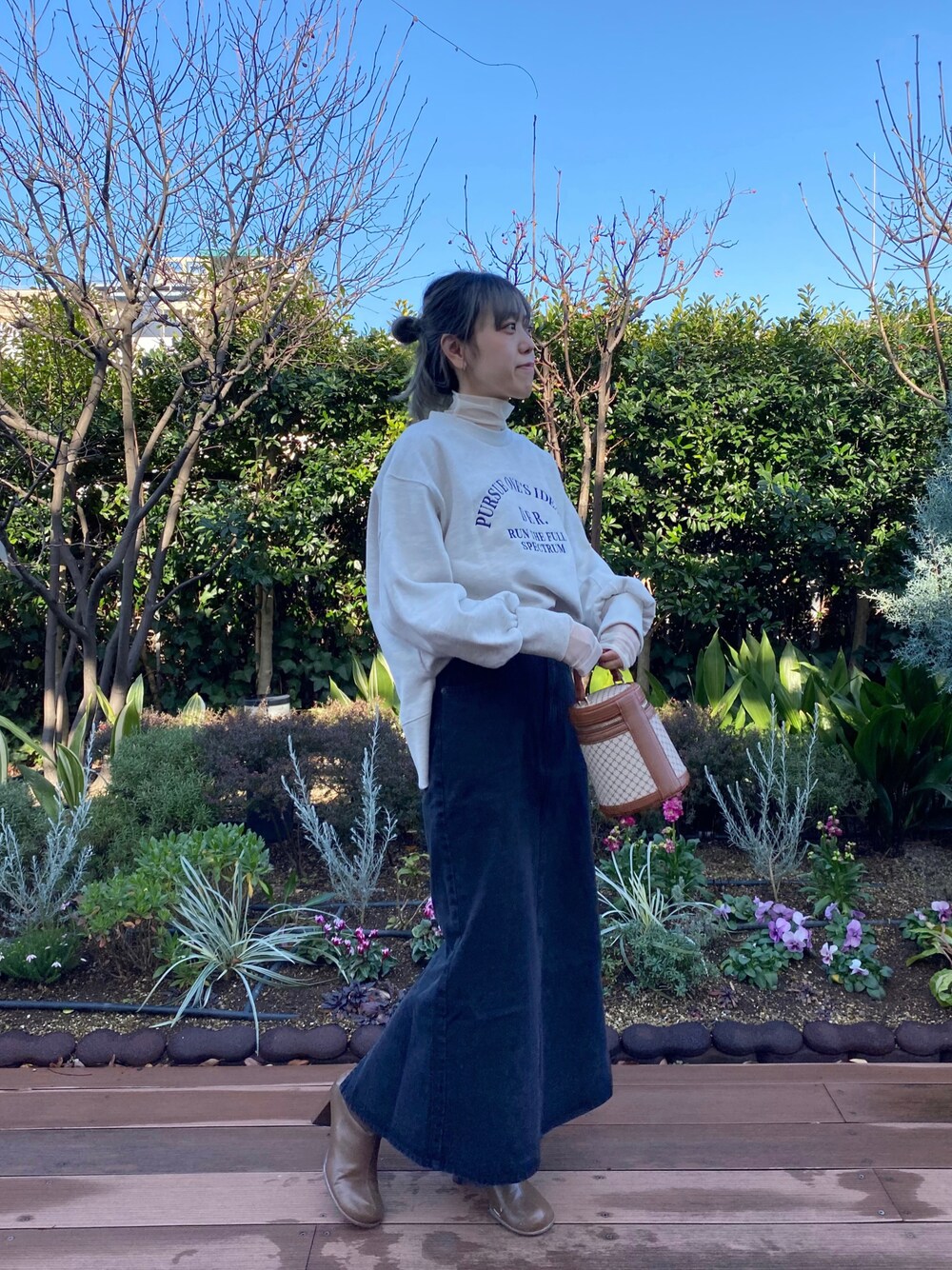 スウェットはカジュアルに着るのばっかりなのでスカートとブーツで少し女性らしく✊🏻💖