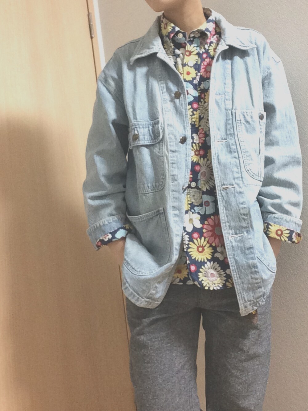 オーバーサイズのカバーオールでゆるめのコーデにしました! でもパンツは細身でメリハリを👌 だいぶ暖かくなってきたのでシャツ+ジャケットで全然いけますね🌱