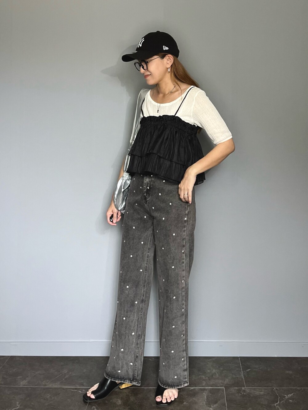 SHOのキャミソール「シアー2wayフリルビスチェ」を使ったコーディネート