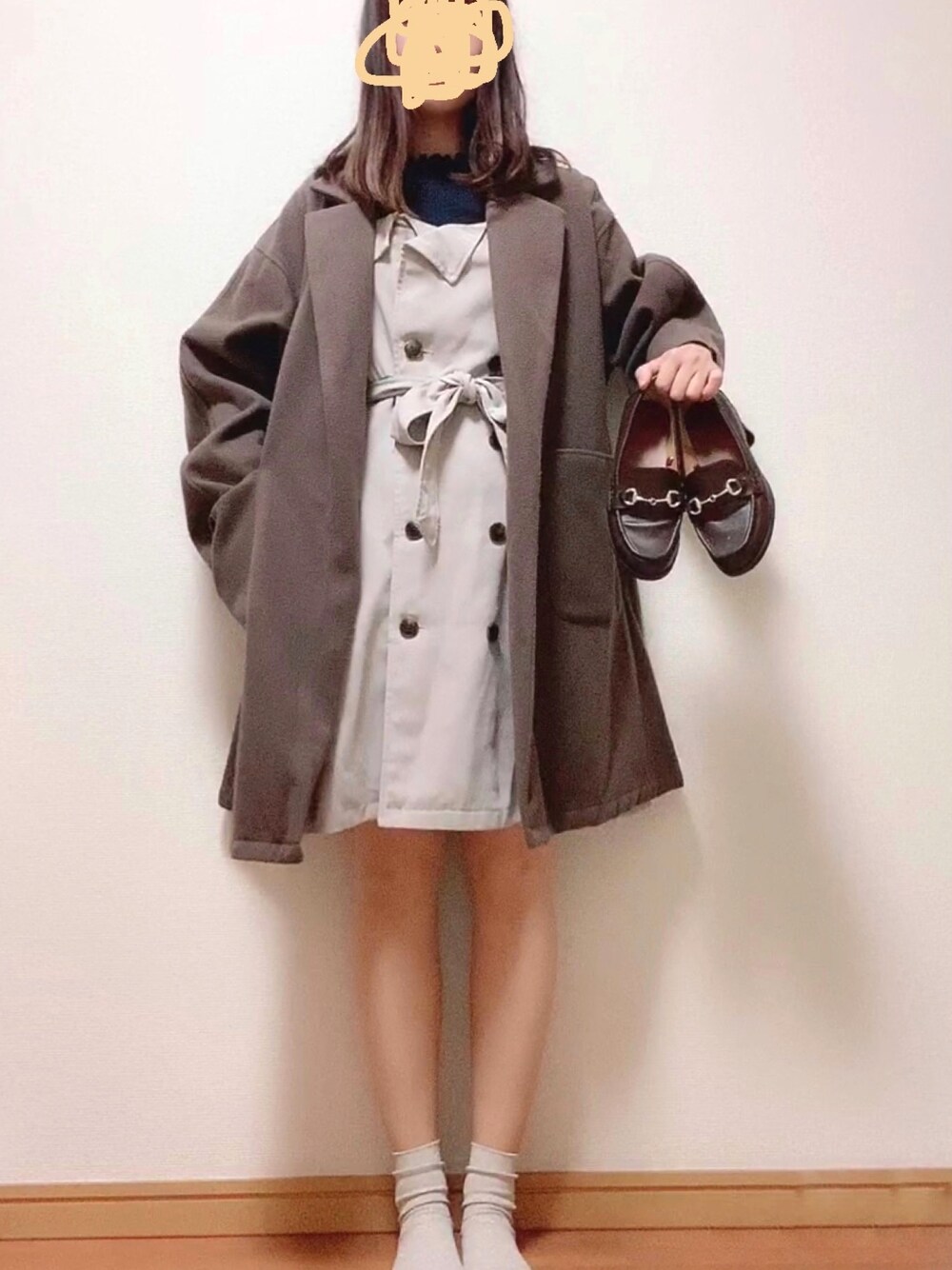 kakipiのワンピース/ドレス「トレンチライクジャンスカ」を使ったコーディネート