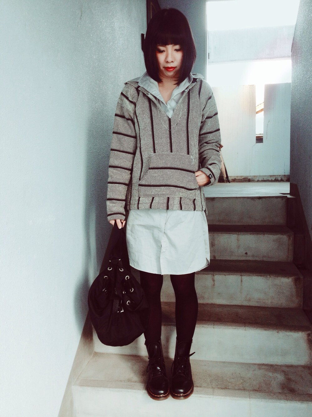 昨日買ったロングシャツと 福袋に入ってたSTUSSYのポンチョ💓 Dark系で。