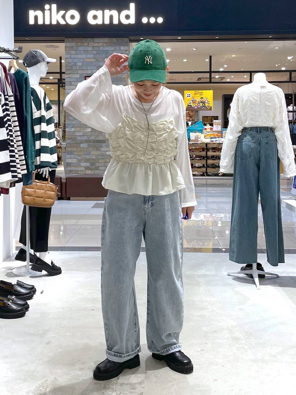 秋のカジュアルコーデ🍂 シャーリングキャミが良い感じにお腹周りの カバーをしてくれます😊◎ 休日コーデやおすすめアイテムをリール動画で紹介してます・:*気軽に覗いていってくださいね🌼