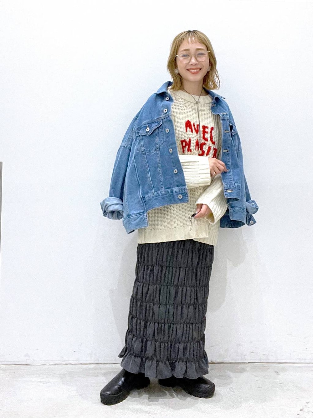 chami(LEPSIM イオンモール名取)のニット/セーター「3ゲージハンドステッチロゴプルオーバー 137526」を使ったコーディネート