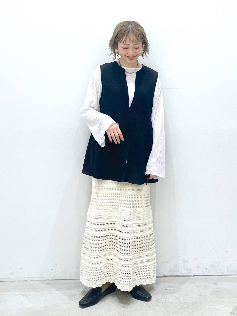 chami(LEPSIM イオンモール名取)のその他アウター「《リネンライクドライシリーズ》リネンライク切り替えベスト 243500」を使ったコーディネート
