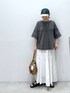 Tシャツ×コットンスカートと合わせてフェミニンカジュアルスタイルに✨ 甘めすぎるのが苦手なのでキャップやバックでカジュアルを入れたくなります^^ 着心地ノンストレスでお子さんとお出かけコーデにも👍 休日コーデやおすすめアイテムを紹介してます・:* 気軽に覗いていってくださいね🌼