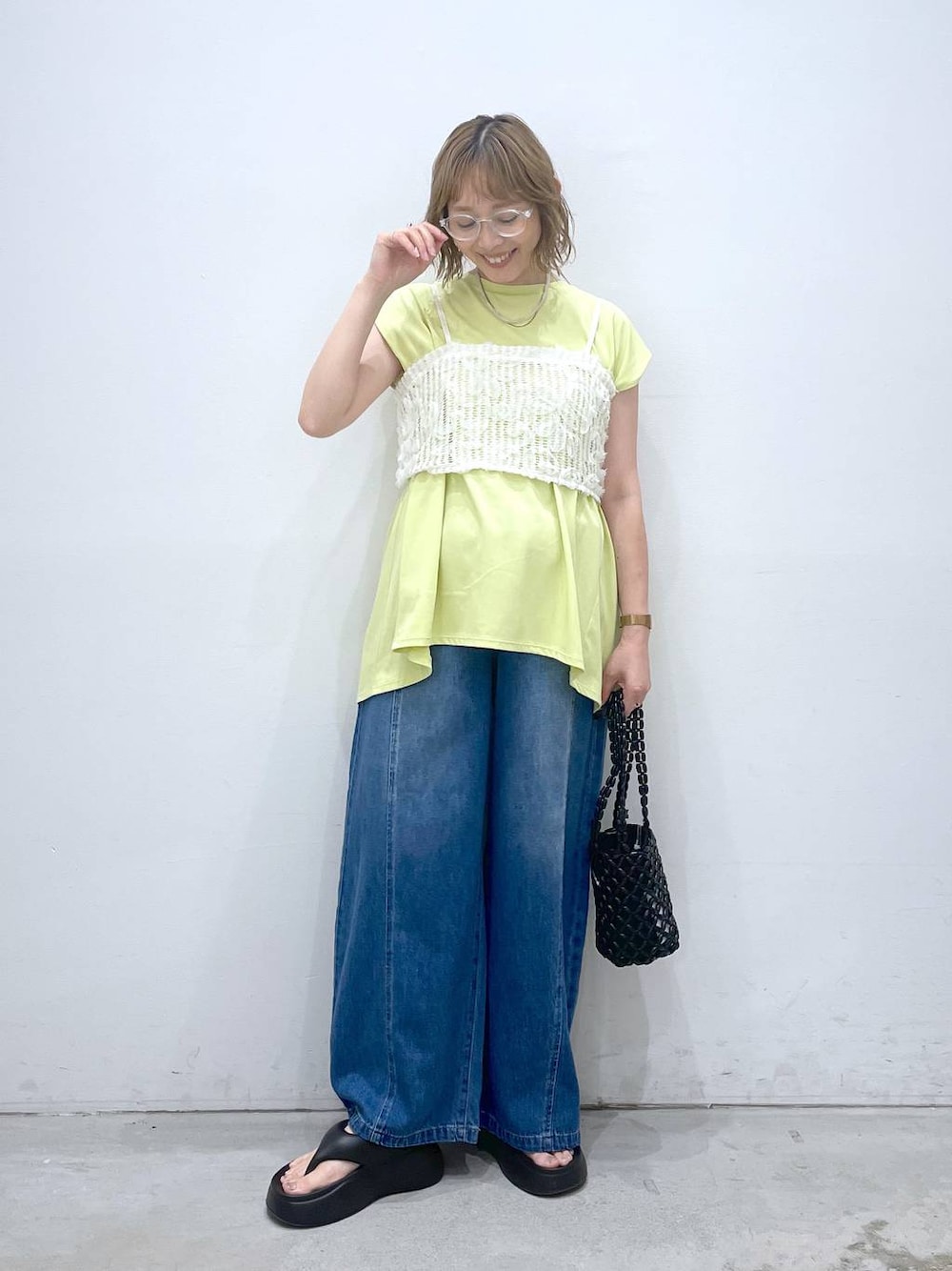 夏に着たくなるイエローグリーン✨ 夏を楽しめるカラーなので普段着ない方もぜひ季節に任せて挑戦してもらいたいです☺️ 着ると気分も明るくなりますよ☀️ 一枚で物足りない時はレーシーキャミをプラス! お洒落見えUPするのでカジュアルな合わせでも お出掛けコーデになります😊 休日コーデやおすすめアイテムを紹介してます・:* 気軽に覗いていってくださいね🌼