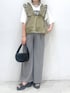 \ 新作コーデ / フリルベストのサイドリボンが可愛かったです♡ 甘くなりすぎないようモノトーンのフォトTで合わせました。 ドビーストレートパンツは後ろゴムが入ってて履きやすさ◎◎ 後期妊婦でも履けるくらいウエスト周りゆったりで楽でした😁 休日コーデやおすすめアイテムを紹介してます・:* 気軽にフォローお待ちしてます🌼
