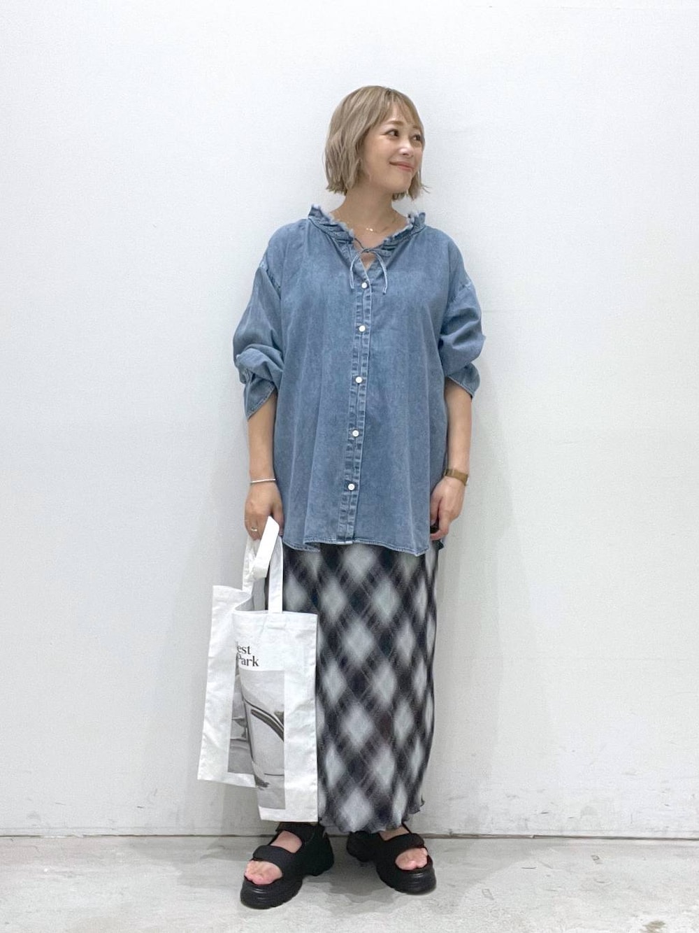 フリルが可愛いデニムシャツ👔 首元と袖がアクセントです✨ ゆるいシルエットが可愛くて、臨月妊婦でもストレスフリーで着れました◎ 気分に合わせて開けて羽織りにするのもおすすめです! ボトムスはマタニティのチェックナロースカート! 軽めの素材ですが、柄が入ることで透けにくく秋らしさも取り入れられます🍂 ウエストアジャスター付きで履き心地とても楽です◎ 休日コーデやおすすめアイテムを紹介してます・:* 気軽にフォローお待ちしてます🌼