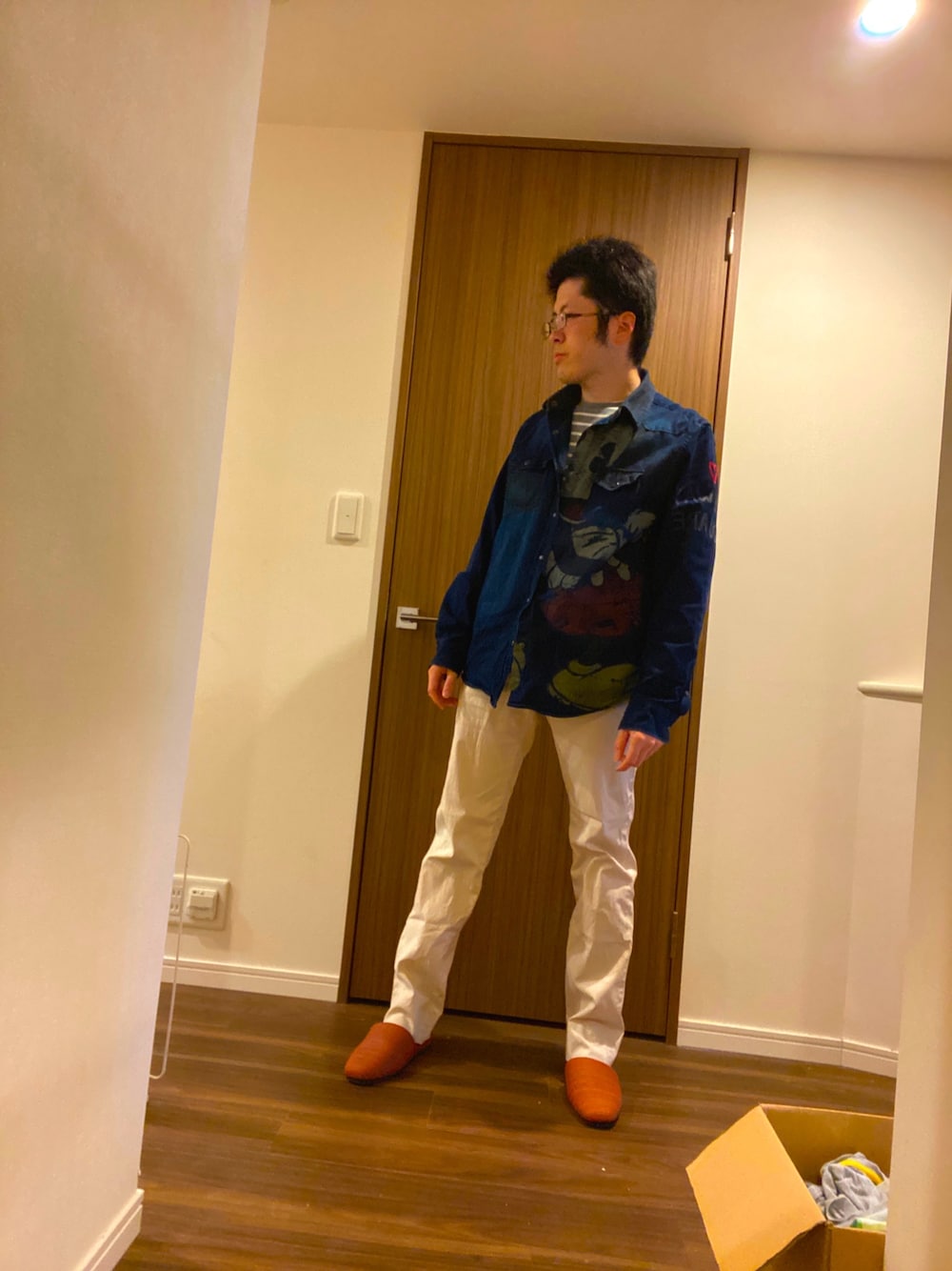 どうも‼️いつも良いね👍フォロー、お気に入りに登録ありがとうございます😊今のご時世コロナが流行っていて、外に出かける事ができないので家にある服でコーデをしてみました!このデニムジャケットはミッキーマウスの絵が描いていてとても気に入ってるので今日の服に取りいれてみました😆一緒にコロナウイルスを乗り越えていきましょう😆では!