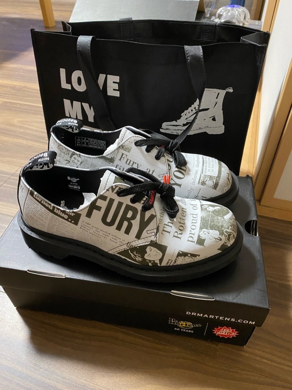 買ったぞーい‼️セックスピストルズコラボ商品‼️店員に聞いたら2回目のコラボらしいぞい‼️ いつも良いねとお気に入りありがとうございます😊ビルグランディー事件をオマージュしたドクターマーチンシューズを買いました☺️かっこいい😆今度このシューズを使ってコーデをあげたいと思います😊