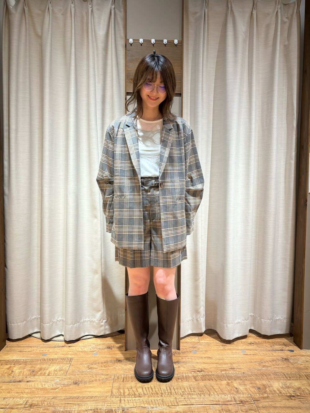 秋にピッタリなチェック柄のセットアップコーデです🍁🍂 ブーツはしっかりしていますが、靴底は柔らかくフィットしてくれるので、履き心地が良いです🎵