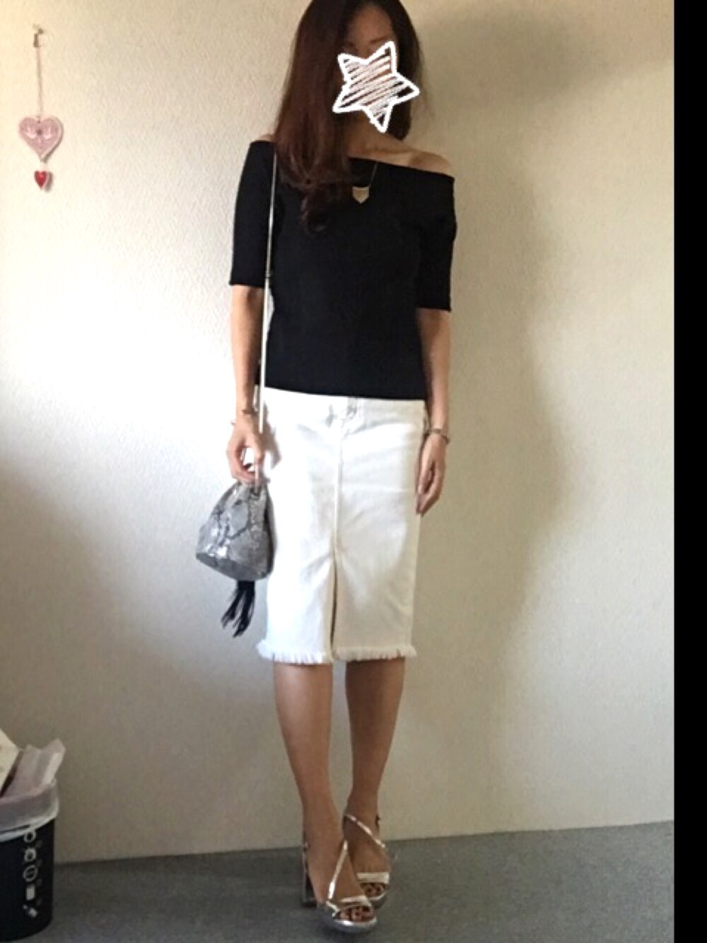 肩幅広いけどオフショルに挑戦(´∇`) ピタっとしてるから割とスッキリ見える♡つもり。笑 これから活躍してくれるハズ( ¨̮ )