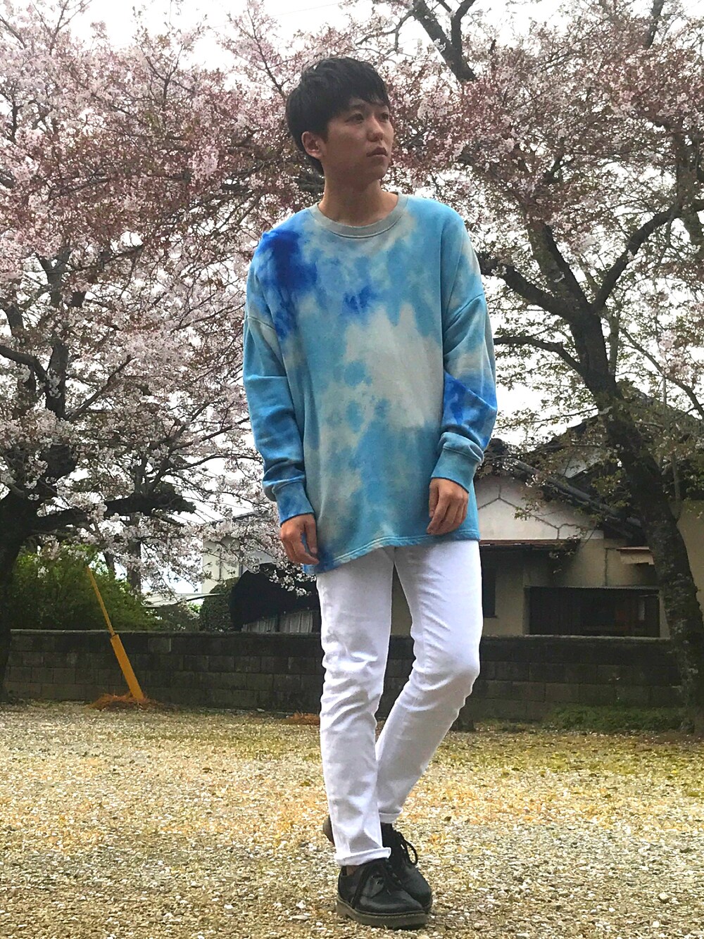 訪問ありがとうございます😊 さて今回は、久しぶりにタイダイ柄のスウェットを使った春コーデにしました。 スウェットがオーバーサイズなので、パンツを白のスキニーデニムにしてVラインになるようにしました。 それでは皆さん、素敵な1日をお過ごしください🎵