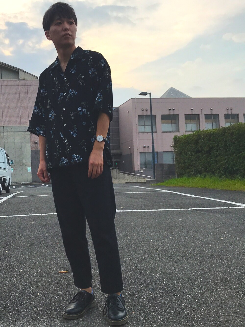 訪問ありがとうございます😊 さて今回は、秋のオールブラックコーデにしてみました。 黒の花柄のオープンカラーシャツは、以前は黒スキニーと合わせたのですが、今回はテーパードパンツと合わせることで少しスッキリした印象を出せたのではないかと思います。 それでは皆さん、またの投稿で💡