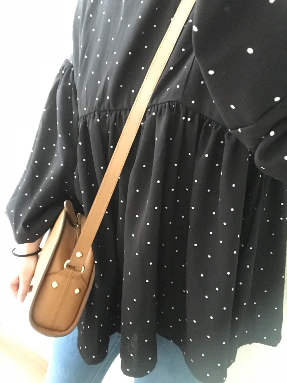 tuna❁︎のシャツ/ブラウス「ドット柄バルーンスリーブフレアトップス」を使ったコーディネート