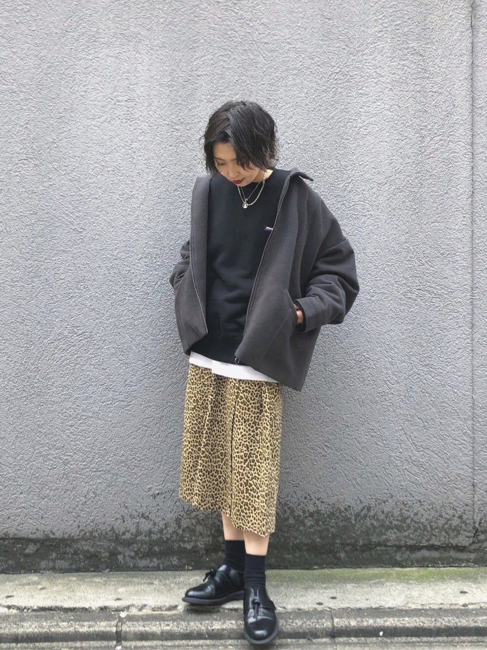 レオパードをメインに ブラックのワントーンコーデ◎ マーチンを合わせてモードさをプラス🖤