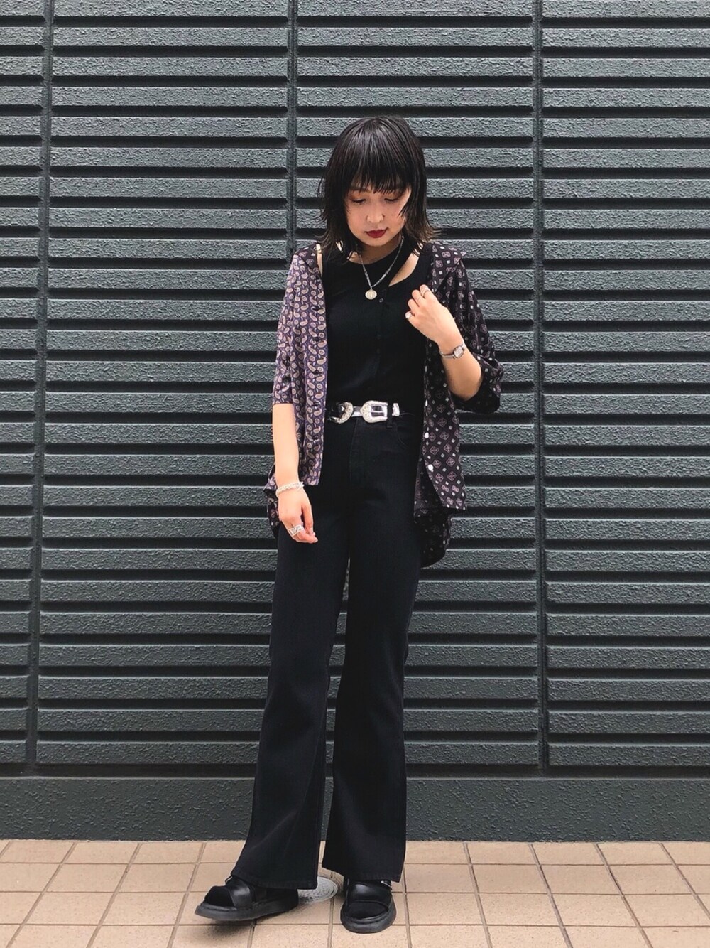 オールブラックに、小紋柄×ペイズリー柄のシャツがポイント🖤