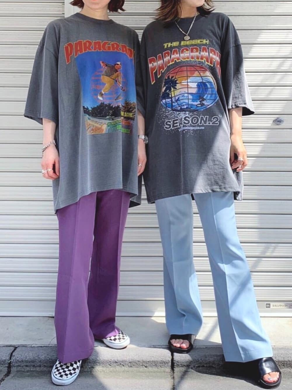 韓国のストリートブランド🇰🇷Paragraph でおそろコーデ👯♀️💕 ビッグTEE × フレアパンツ で、 モードストリートコーデ🖤