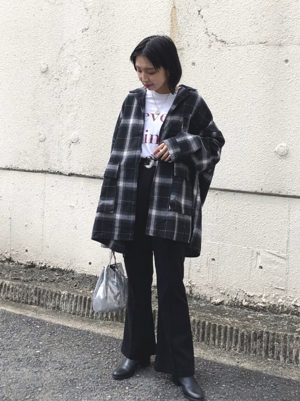 メンズのビッグシャツも、 Aラインのシルエットですっきりモードに🖤 ✔️instagram → @tomom1._