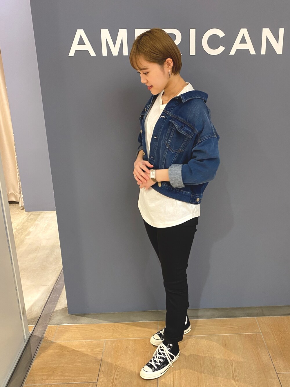 シンプルコーデ⭐️ これから大活躍のデニムジャケット! 肩を落として着てみました♡