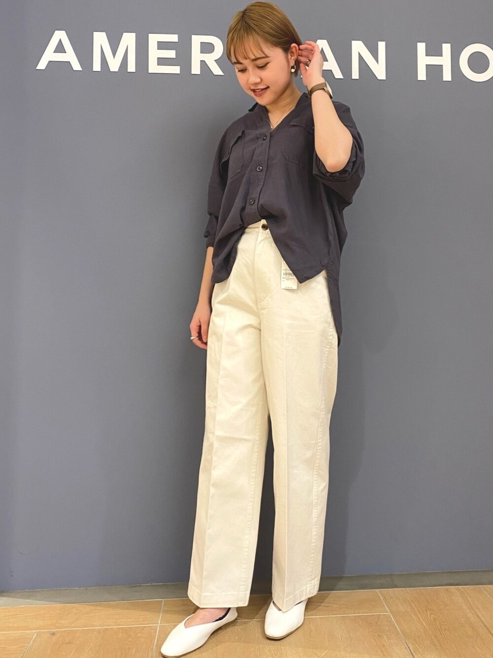 これから大活躍のホワイトパンツ🤍 リネン素材のシャツと合わせました! ボタンを開けると羽織としても使えます♪ (色違いバージョンもコーデあります!見てね⭐️) ワイドパンツはセンターラインが 入っているのでスタイルよく見えます♪ パンプスがお上品に見せてくれます👀