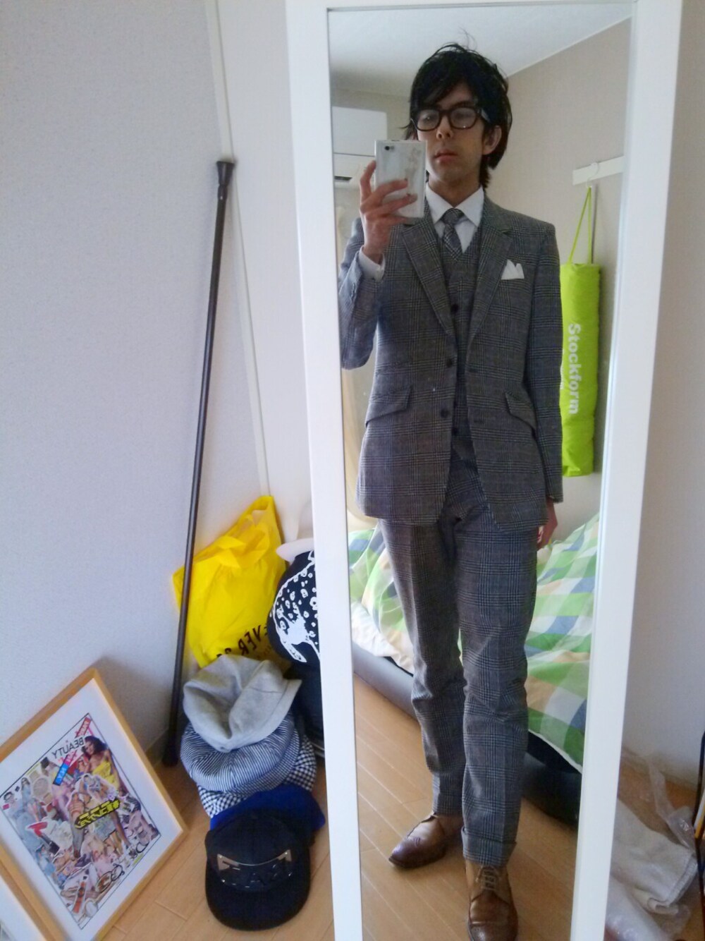 the beausnob のスリーピーススーツ これで本切羽なら完璧だったんだけどねぇ~ 髪がモサイ