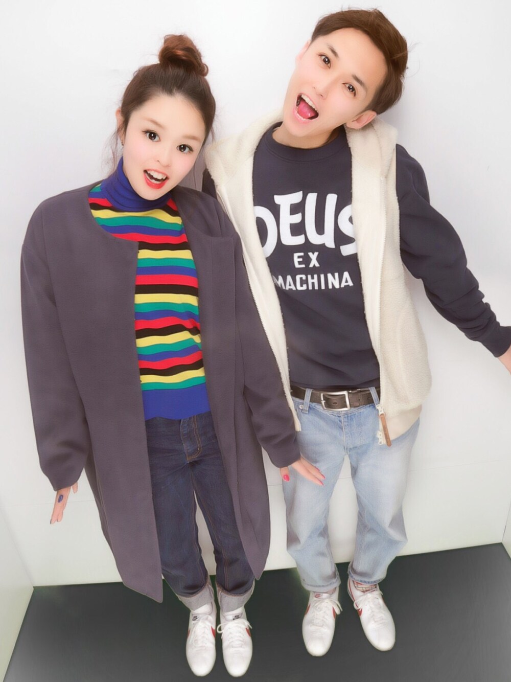 2年と1ヶ月記念日に ひさびさにパシャり😎 コルテッツを揃えましたー😍 レトロ感のあるデザインがいい!! 初期のコルテッツデザインいいね🤙✨ これからも仲良く服着ましょーね👩❤️💋👩