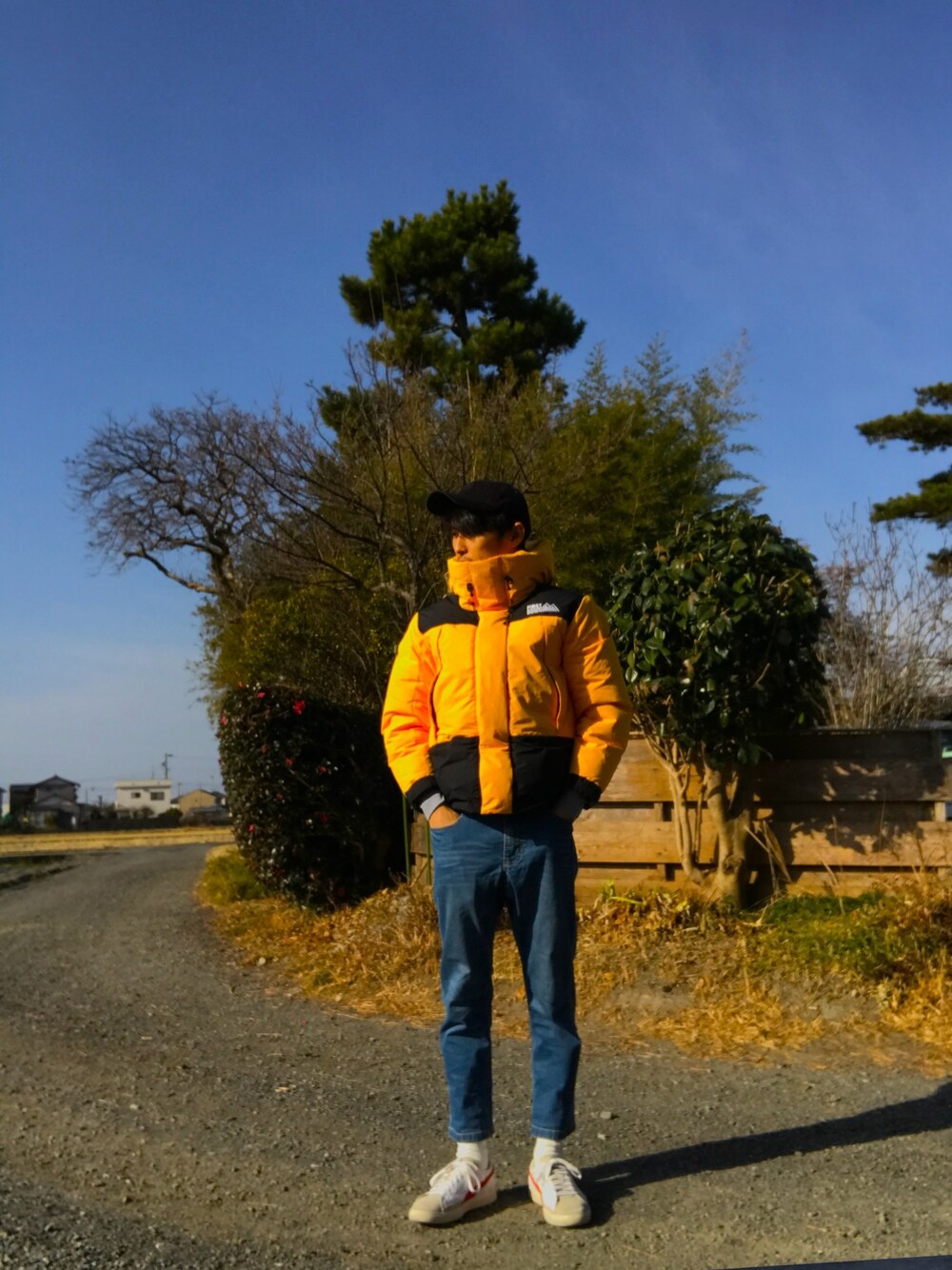 良い天気でーす☀️ フリークスストアの ファーストダウンを久々に🙋♂️ デニムはグラミチで丈短めですが 白ソックスとPUMA 90680オレンジをチョイスして少し着こなしは90sを👍