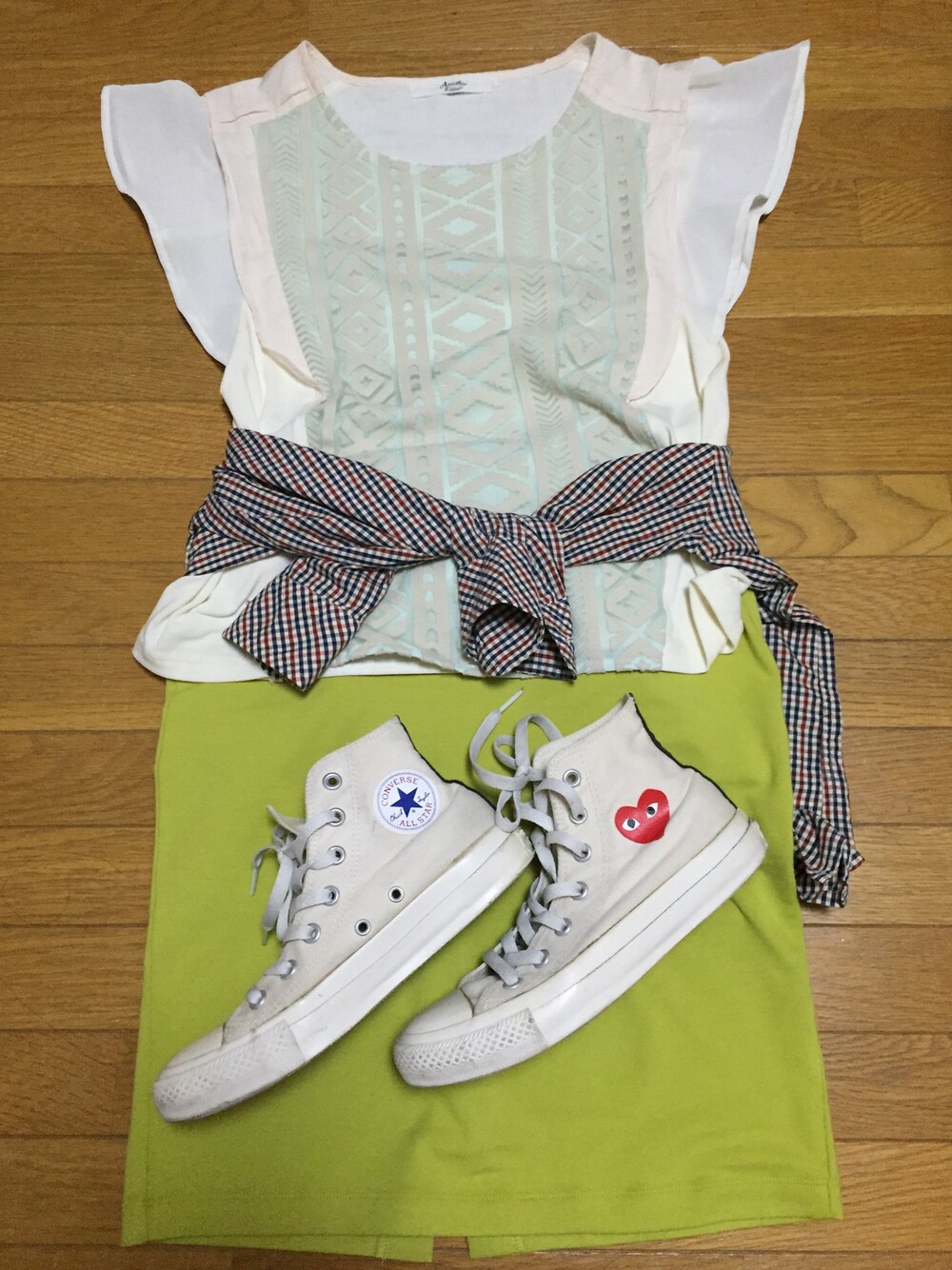 このトップス、初めてスニーカーと合わせてみたけど、案外いけるかも♡ 超お気に入りのギャルソンコンバースが主役♫