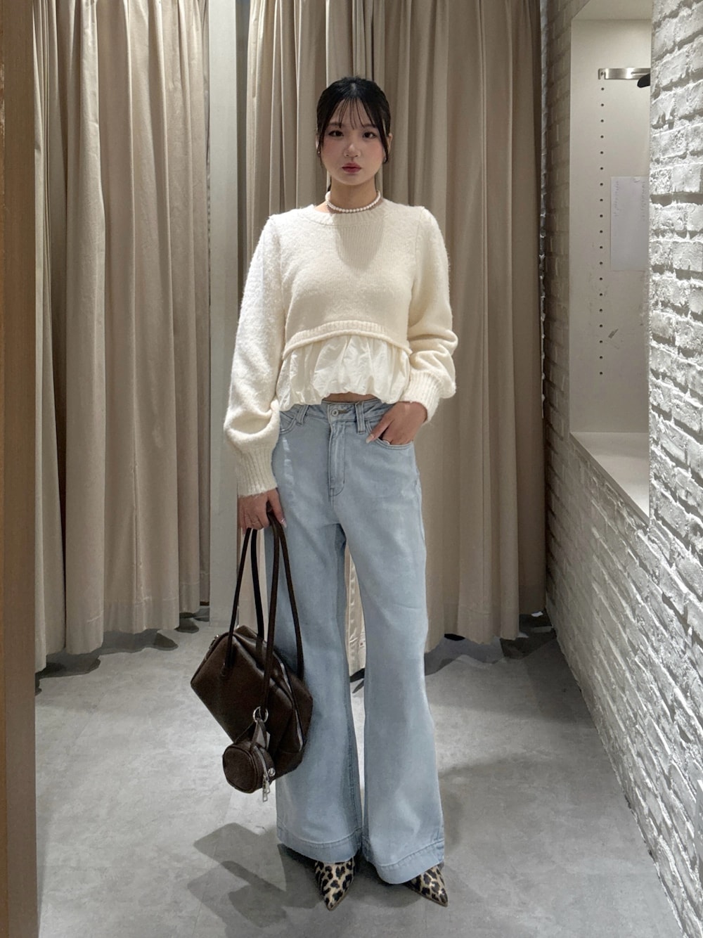 miku(FREE'S MARTルクア大阪)のニット/セーター「アルパカ混布帛ドッキングバルーンニット」を使ったコーディネート