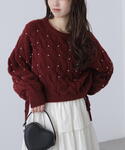 miku(FREE'S MARTルクア大阪)のニット/セーター「ウエストゴムパールミックスケーブルドロストニット」を使ったコーディネート