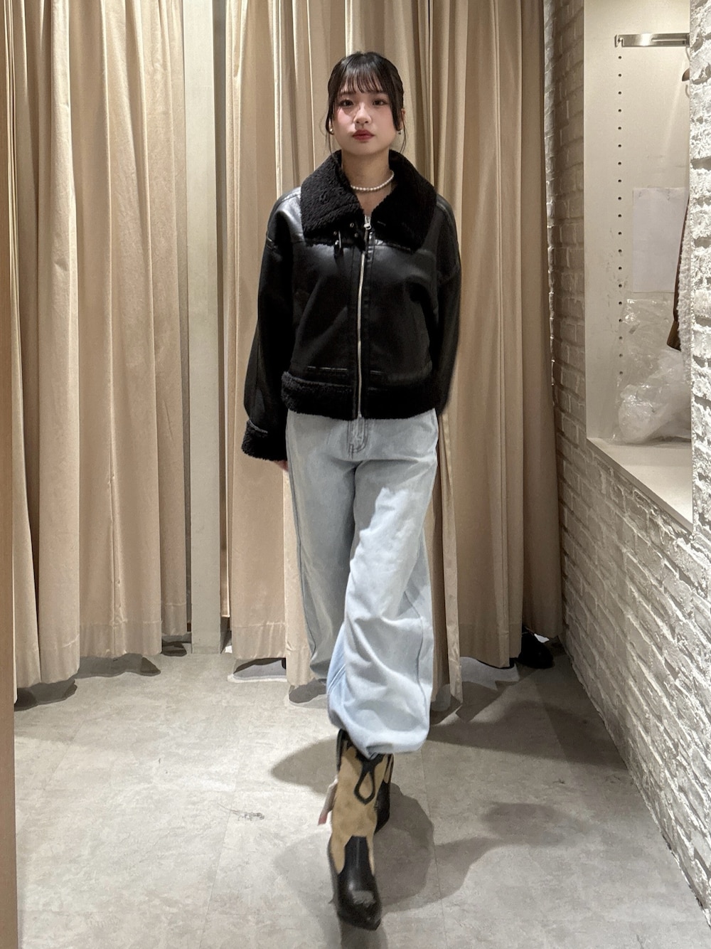************************* 身長:165cm /普段サイズ:S.M👟24cm 骨格:ウェーブ/パーソナルカラー:ブルベ冬 Instagram▷▷@miku__722 WEAR▷▷@105439 ************************* ・アウター《ブラック.S》 あたたかさと可愛さを兼ね備えた優秀アウター🩶 ゆったりオーバーに着たい方はMサイズがおすすめです☺︎ ・デニム《ライトブルー.M》 ブーツインしてもいいし、カジュアルにスニーカー合わせもかわいいデニム♡ ウエストゴムなので楽ちんです💫