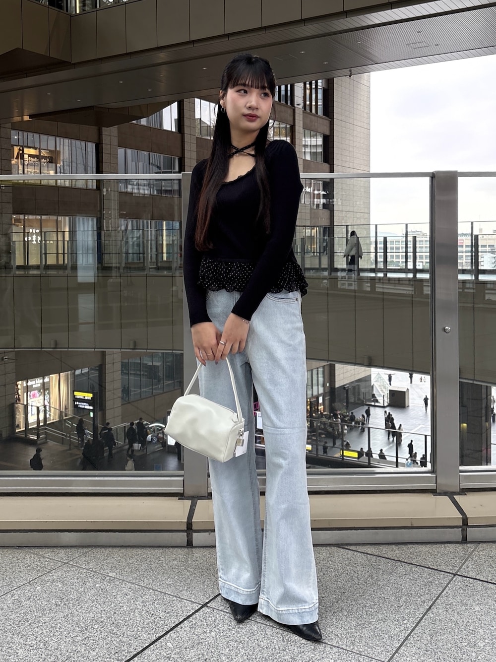 ************************* 身長:165cm /普段サイズ:S.M👟24cm 骨格:ウェーブ/パーソナルカラー:ブルベ冬 Instagram▷▷@miku__722 WEAR▷▷@105439 ************************* ・トップス《ブラック.FR》 レイヤード×ドットでトレンド感満載◎ ペプラムデザインで華奢見えするのもお気に入りポイント♡ ・デニム《ブルー.L》 フリーズマート大定番のワイドデニム! ゆるっとだぼっと着たい高身長さんはLサイズがおすすめです🌟