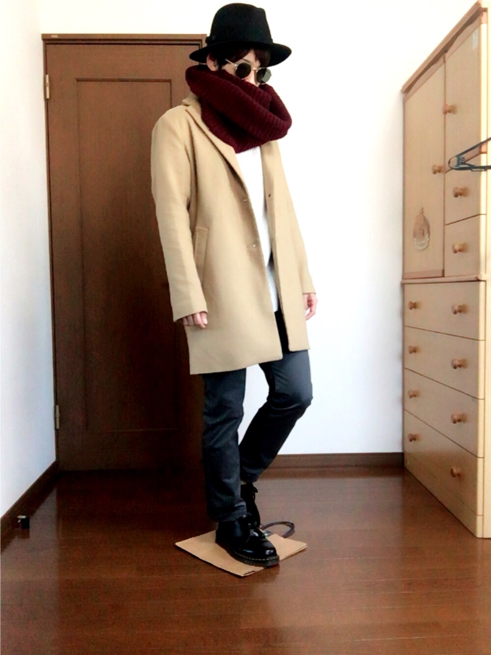 久々の投稿になりまーす(๑•ૅㅁ•๑) なんか忙しかったのかな?笑 それよりもう冬ですね! 白のビッグニットが良い✨ ワインレッドのスヌードとの相性d( ̄  ̄) 細めのパンツに大きめのコートでシルエット🙆♂️かな?笑 良かったら、いいね、フォローお願いします(*´∀`*)