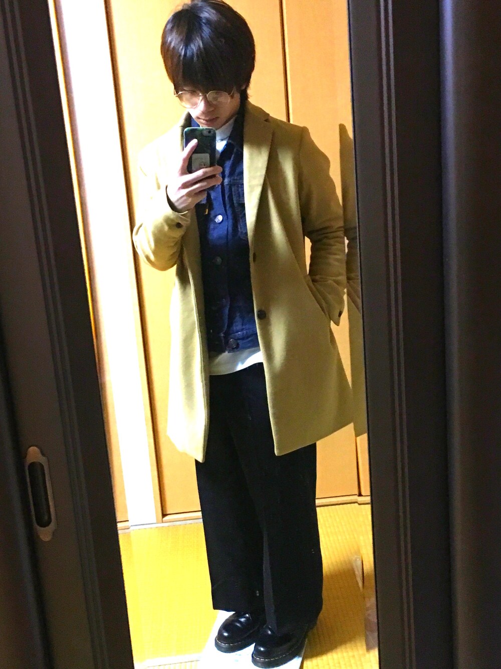 マッシュのチェスターコート「WEGO/ノッチド2ボタンチェスターコート」を使ったコーディネート