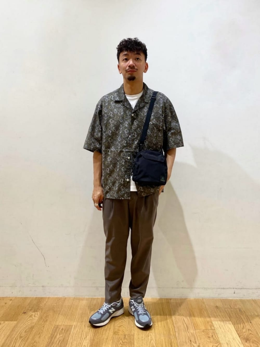 【サイズ感】 シャツ:ゆったり カットソー:標準的 ボトムス:ややゆったり 【コーディネートポイント】 LIBERTYのオープンカラーシャツにウォッシャブルトロのスラックスを合わせ、上品なスタイルにまとめました。 足元はスポーティーなスニーカーを合わせました。