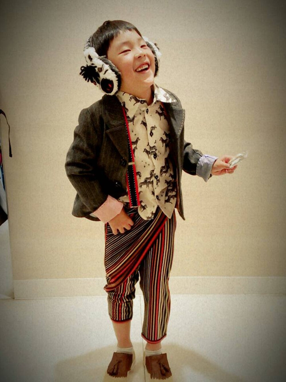 きたせんじゅぶーのイヤーマフ「シマウマイヤーマフ」を使ったコーディネート