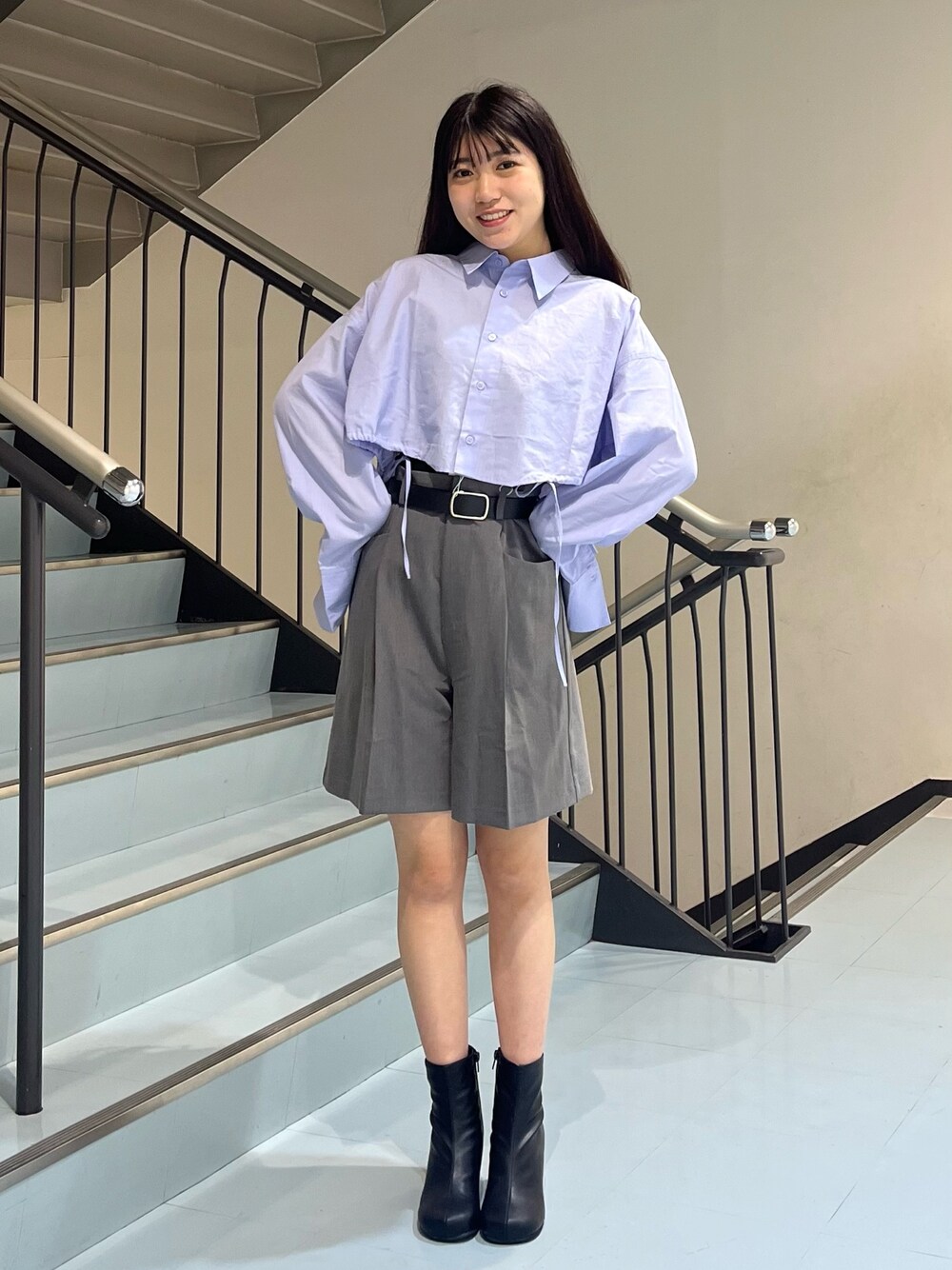 ショート丈のシャツは下の部分が絞れるデザインです🌱ハイウエストのものと合わせて⭕️韓国風なファッションにすることもできます🌀