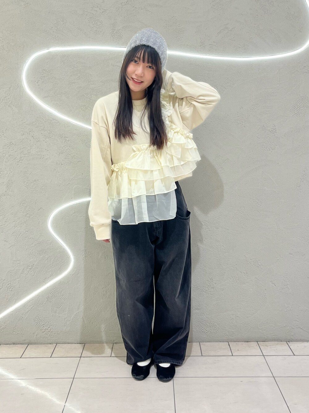マ ナのニットキャップ/ビーニー「ラメニットビーニー」を使ったコーディネート