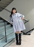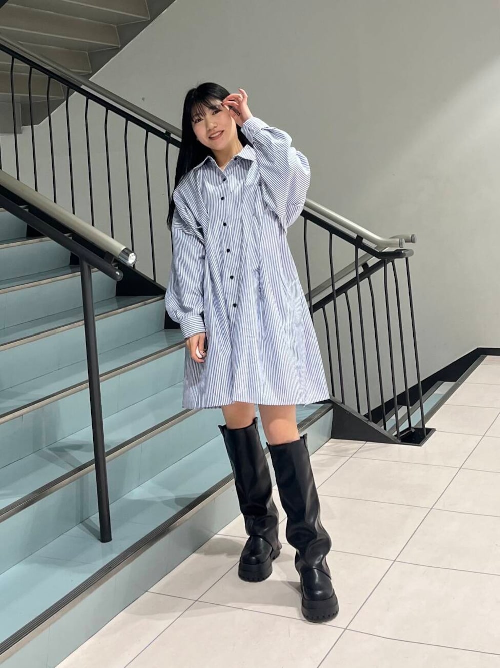 マ ナのワンピース「ストライプウエストタックミニワンピース」を使ったコーディネート